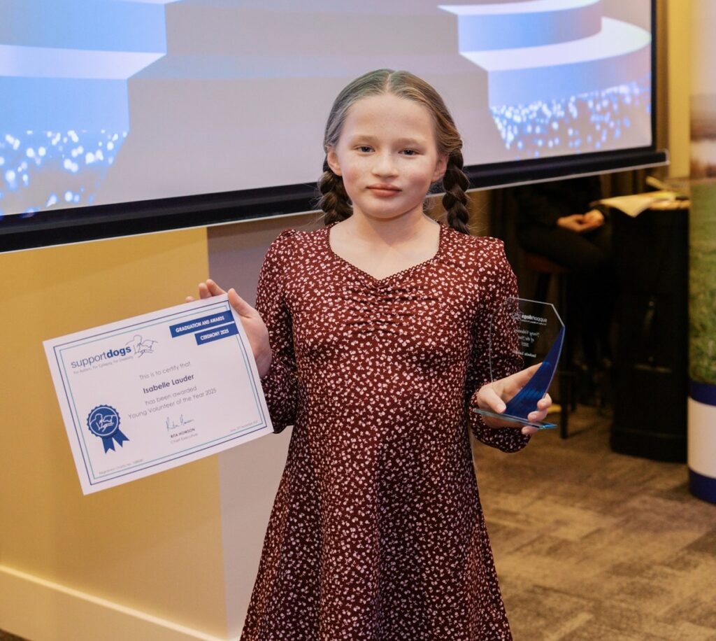 To say thank you for her support this year, the charity invited Isabelle and her family to their annual graduation and awards ceremony to see Frank graduate. But she was gobsmacked to hear her name called out for the Young Volunteer of the Year award.